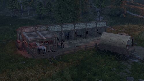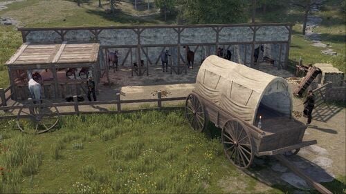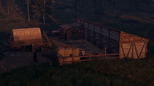 This monument serves as an excellent medieval alternative to stables and ranches. It seamlessly fits into any map and features a safe zone guarded by archers, along with a functional horse seller.
