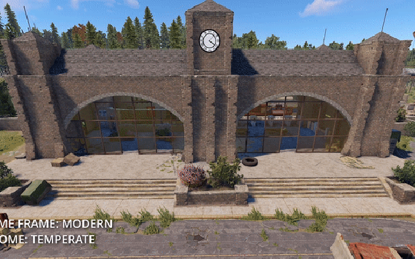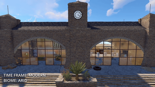 Welcome to my Medium Railway Station, which features two-time period theme kits to choose from modern and olden days. Each kit changes construction materials and many structural changes, and the little details fit the time chosen. Additionally, two biome decor packs contain rocks, grass, bushes, and plants to match biomes temperate and arid. The monument includes many great looting opportunities, including a blue card puzzle and underground tunnels. This monument can be added to a more extensive railway network or just used standalone.