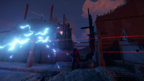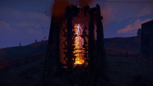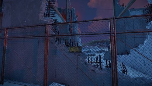 Meltdown is a Reactor that's gone BOOM!, its surrounded by a working electric fence. Zip wires, Parkour and general acrobatics can get you into the abandoned buildings be be aware its not an easy climb and the radiation will make it harder. A no fly zone exists for those looking for an easy way in. For those of you with an aversion to the FX, there is a version without all the bells and whistles for the