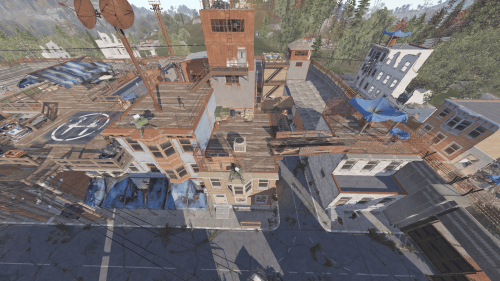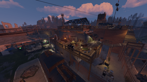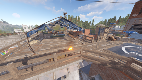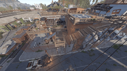 The combination of Outpost, Ranch, and Bandit Camp creates a multifaceted location where players can engage in a variety of activities. This area is equipped with 10 recyclers, facilitating efficient resource management and item recycling, and includes an AirWolf helipad for aerial transportation. Furthermore, it features two ranches where players can purchase horses, and additional vending machines, some of which are sourced from the Bandit Camp, offering a wide range of items for sale.