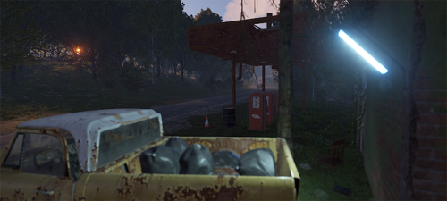 Roadside Accident A1 - Flaming Remains of an ambusher with a destroyable barricade(Leftside of roads)