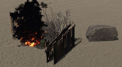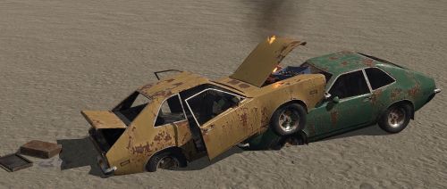 Roadside Accident A2 - Flaming Remains of an ambusher with a destroyable barricade(Rightside of roads)