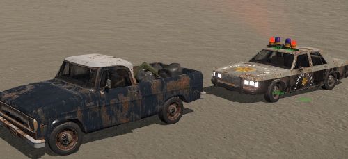 Roadside Stop A1 - Highway Patrol Sedan with pulled over blue truck full of suspicious trash