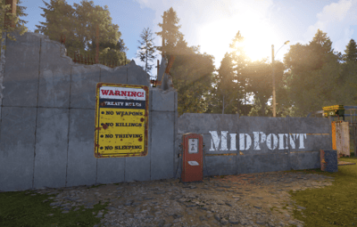 Midpoint is a small monument (one PvE and one ) that can be placed near roads. Convenient for new players that just joined your server and do not have teleportation rights or just simply wish to enjoy the company of others in safety around a fire pit. There are 3 vending machines, a slot machine, big furnace, small refinery, workbench 1 and 2, recycler, research table and repair bench. PVE does not require a safe zone and comes with Reactivetarget for target practice, good for some fun. PVP includes safe zone mechanism. No build was added to both pve and pvp monument. No peacekeeprs added, you can add them in either in RustEdit or in game.