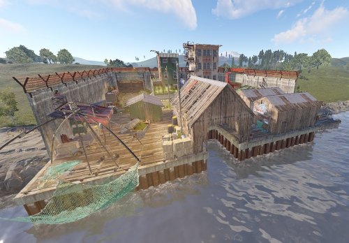This coastal monument is a mini space saving all in one containing outpost, bandit camp, fishing village & stables/ranch. Nothing is missing you have all vending machines and vendors and npc mission givers as well as recyclers, workbench, refinery, poker room, drone station, helicopter shop, boat shop, horse shop. Perfect for one grid or smaller size maps with the smaller footprint plus at only 1238 objects.