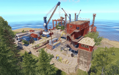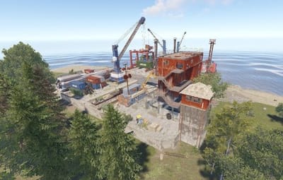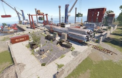 This monument is a mini space saving replacement for Harbor 1/2. Nothing is missing you have all the same puzzle and loot as well as recycler, refinery, and blue card. Perfect for one grid or smaller size maps with the smaller footprint and no protruding edges.
