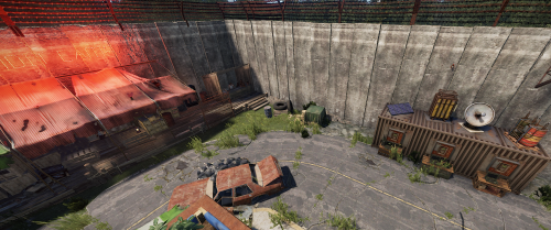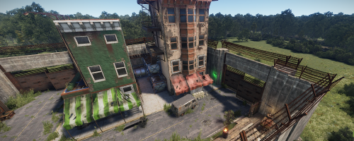 This monument is a mini space saving all in one outpost and bandit camp. Nothing is missing you have all vending machines and bandit vendors as well as recyclers, workbench, refinery, helicopter shop on the roof and even a poker room + drone station. Perfect for one grid or smaller size maps with the smaller footprint.