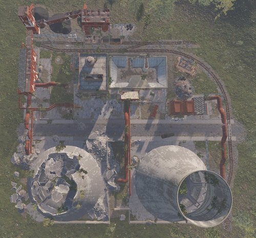 This monument is a mini space saving replacement for Power Plant. Nothing is missing you have all the same puzzles and loot as well as recycler, refinery, and green/red card spawns. Perfect for one grid or smaller size maps with the smaller footprint and no protruding edges.