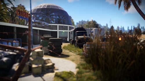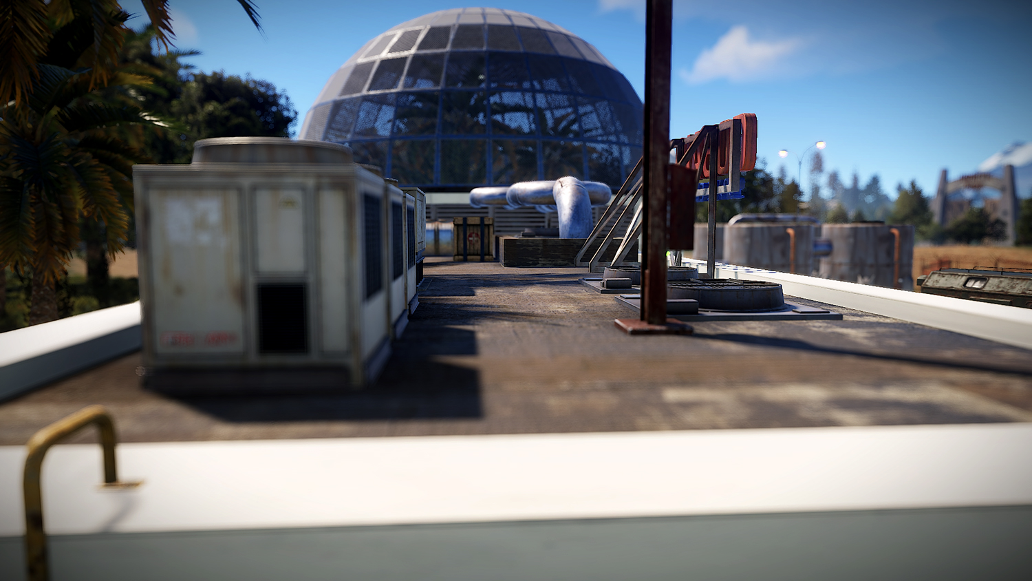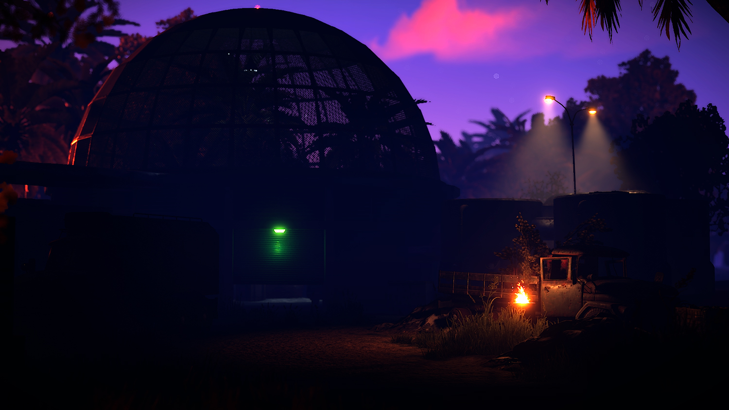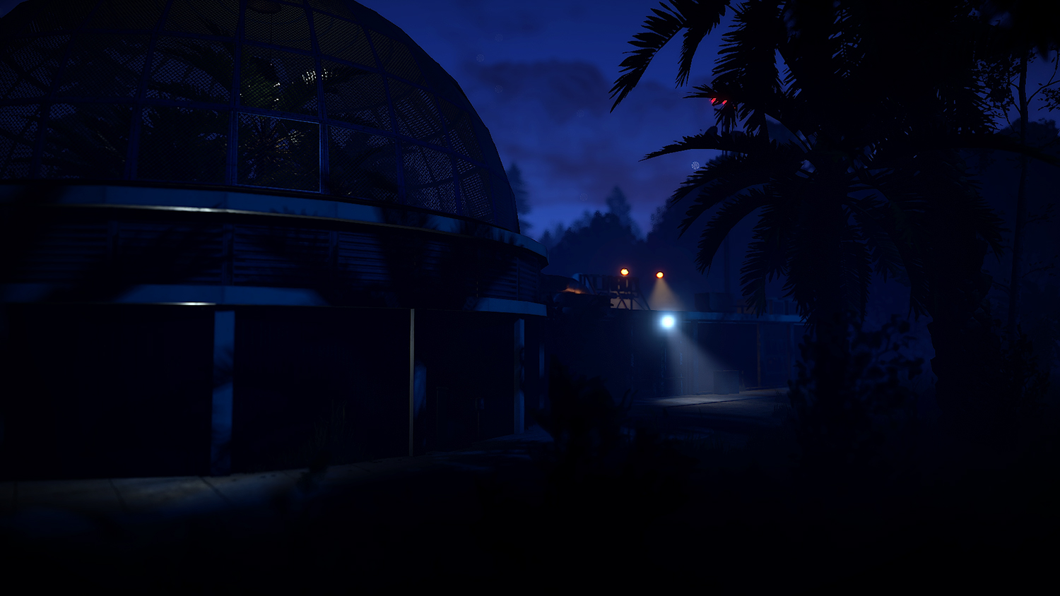 Nublar Genetics is a division of Cobalt industry which makes experiments on all kinds of living and dead organisms as well as minerals and plants, that's why this building has an experiment dome on the flora, some guards are watching it in order to scare away thieves..