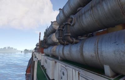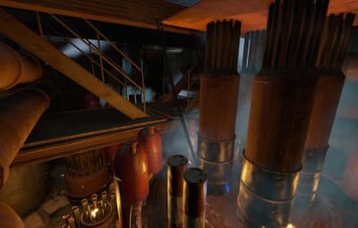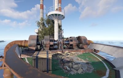 The Nuclear Cargo ship is ready to go, the puzzle needs a red card and a fuse to get into the full loot.