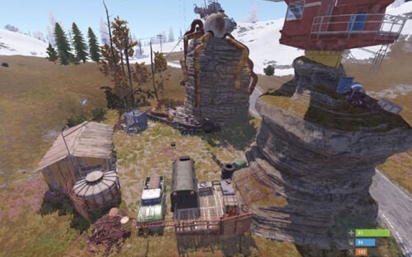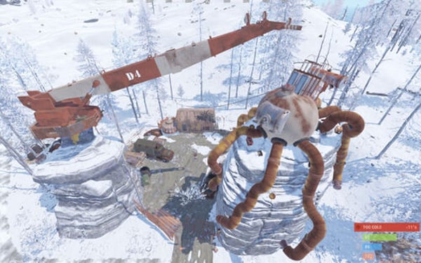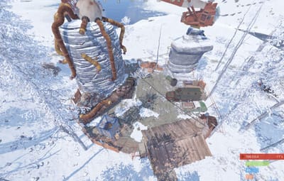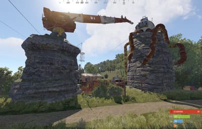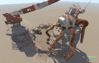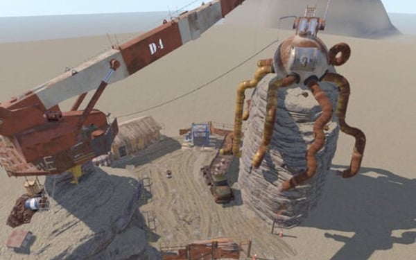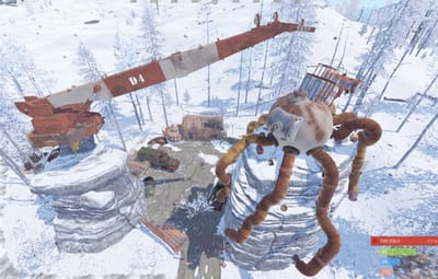 A compact mini-monument featuring a technical yard with a crane where a mechanical octopus is being assembled. Despite its size, it offers multiple paths and navigation options. The main highlight is a locked shed that doesn't require a keycard but instead must be opened with a 4-digit code. The numbers for the code are hidden around the monument, requiring players to search for them (can you figure it out from the screenshots?
