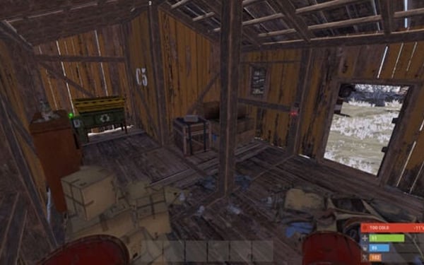 ). Inside the shed, players who solve the puzzle can safely use the recycler behind closed doors. The "eye" of the mechanical beast is a functional CCTV camera with the ID "OCTOPUS", which can be accessed by players (the camera's name is written on top).