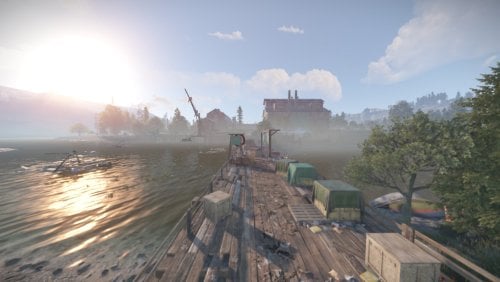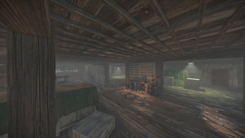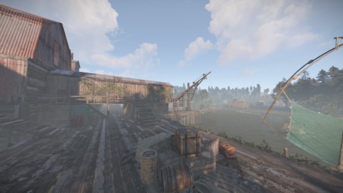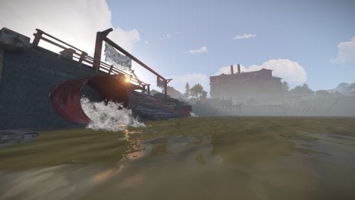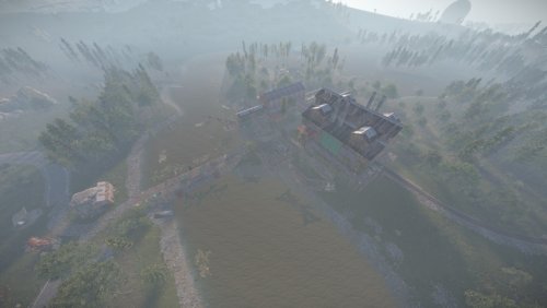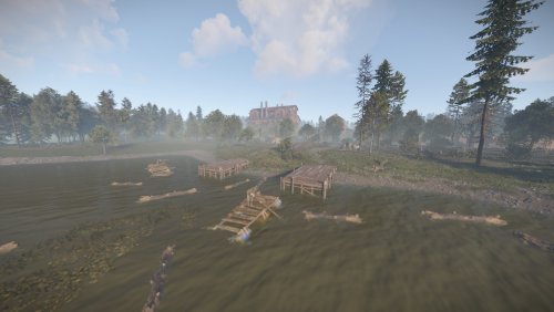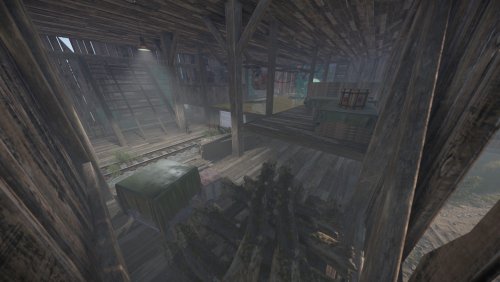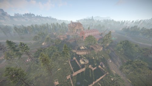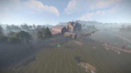 I bring to your attention the 4th foggy location for battles and loot extraction by the players of your server. This location is an abandoned sawmill. The tree for this sawmill is delivered from the swamps. Also on the sawmill itself there is a pool with soaking logs. In the central building you will find wood-processing machines and much more. From the front of the monument you will find a dilapidated bridge, which is a small dam. The size is comparable to a Large Excavator