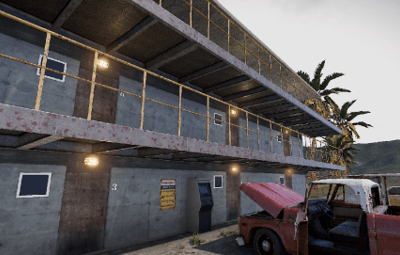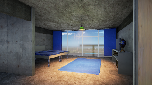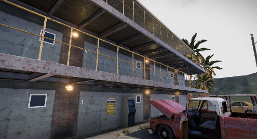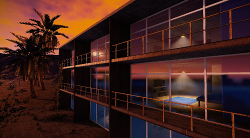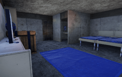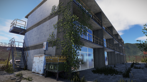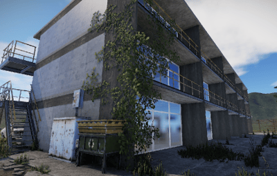 The loot is in the rooms. A recycler is on the corner of the stairway. The prefab has been tested on several maps and has no errors.