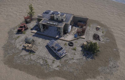 A small Pharmacy similar to a the gas station and supermarket, it has a few crates and a green keycard.