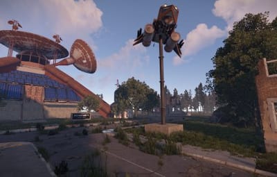 On the outside you can find a Small Shuttle in the Air with a Redcard Spawn.
