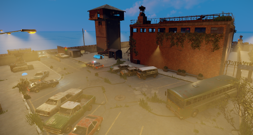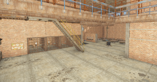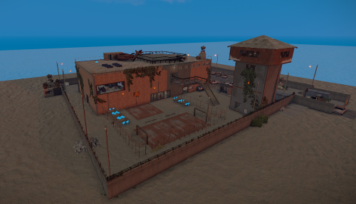 The custom prison includes standard prison facilities such as visitation areas, the yard, jail cells, as well as administrative offices. Additionally, it utilizes a system of red and green cards.
