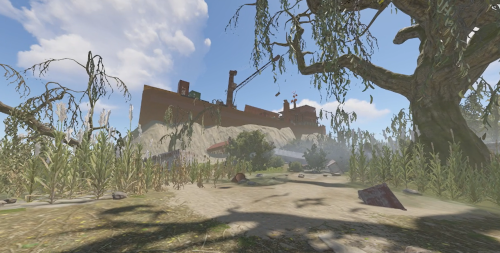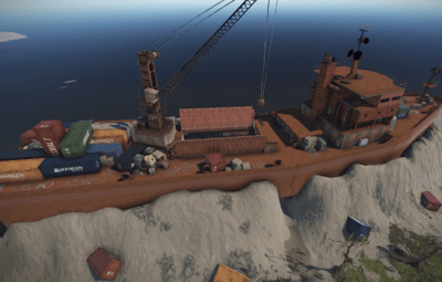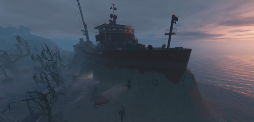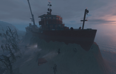 Similar to Launch site the ship is engulfed in a high level or radiation, needing a hazmat suit and some form of anti-rad to enter. The ship has a small two switch puzzle and requires a red access keycard to enter the laboratory which has 3 elite crates. 4 scientists can be located outside the ship, surveying the grounds.