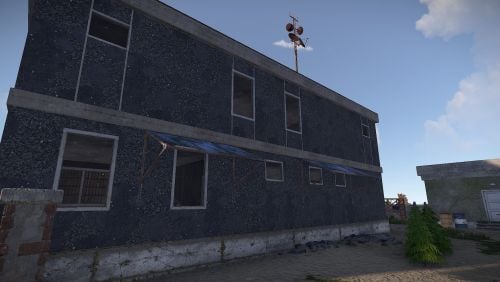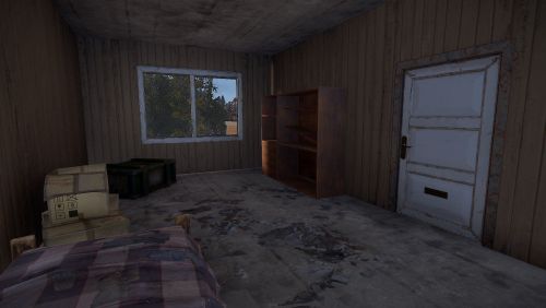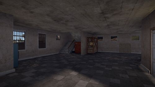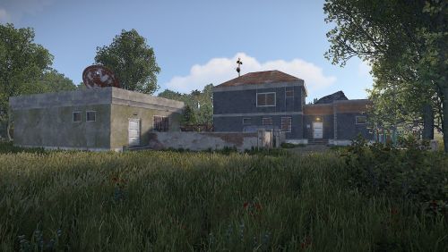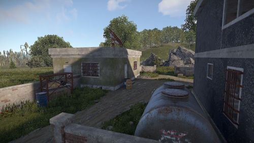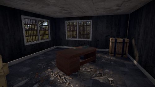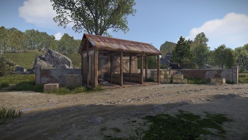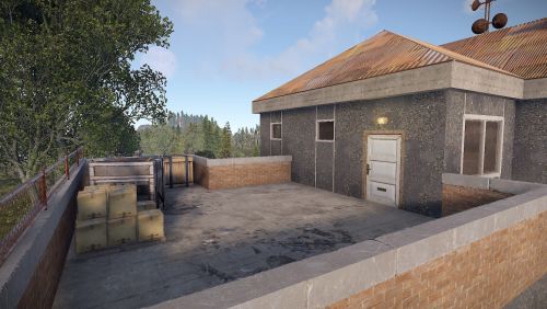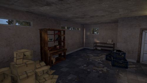 Here you will find a Workbench level 1, 6 regular boxes, 1 military, a green card and some barrels that can be destroyed.