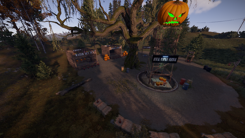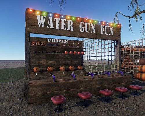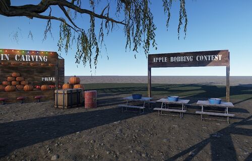 The annual pumpkin festival has 3 NPC's and various loot all around it along with a dunk tank, pumpkin carving, apple bobbing and water gun station. Great prefab for Halloween!