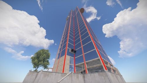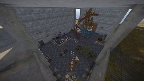 this is quandary tower. a very tall puzzle filled with over 15 puzzles that players will need to complete in order to reach the top. there are also 2 build spots that players can build in near the top that players will need to complete the majority of the tower in order to reach them. once inside the build spots players can not enter the tower from the door the entered the build spot via they have a private sliding blast door with its own io that they can set up so they can come and go as they please via there own private heli pad the base can still be raided but the raider will need to complete the majority of the tower in order to reach the base. the tower its self has a ton of puzzles and a few of them are very difficult and players will most likely get stumped on them. a lot of the puzzles are unique and they will most likely not of encountered them before puzzles requiring them to use drones/cranes/io/rf transmitters. most of the puzzles wont kill them but there are a couple that are deadly.