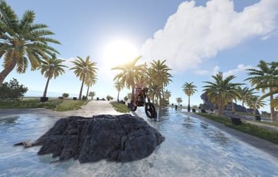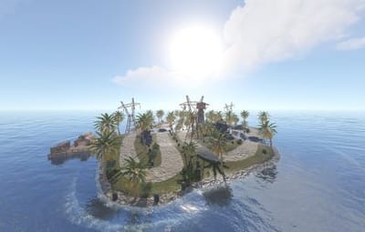 Inside one of the ramps, there is a dev cube to assist with aligning the island with the ocean. Apply the height map twice for best results, then apply the splat, and you should be good to go.