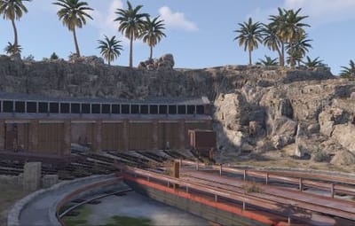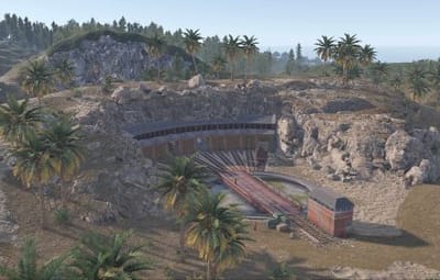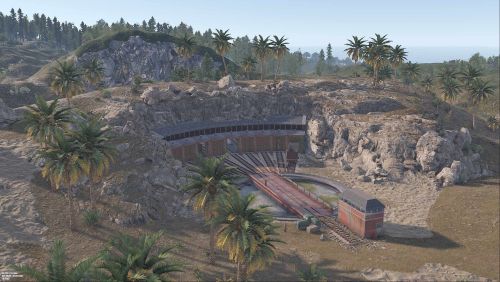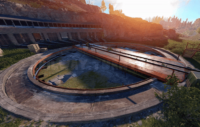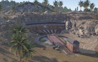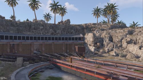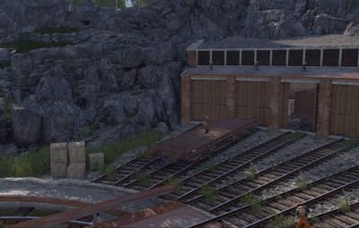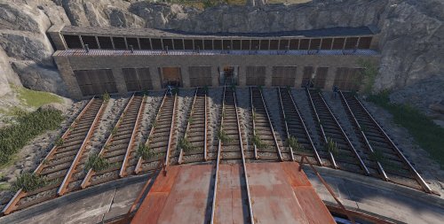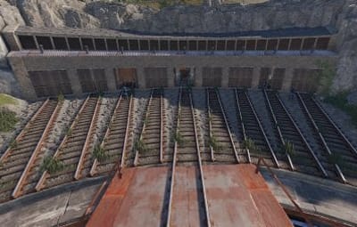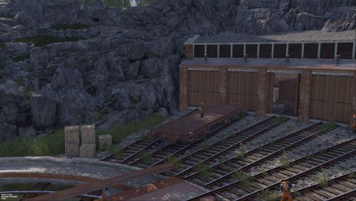 Railway Turntable & Maintenance Shed is a monument that can be used with or without a railway system connected and contains a work cart spawn inside if needed. You will find work carts and waggons in various stages of repair inside the maintenance shed and lots of looting opportunities including a blue card puzzle to access the storage room.