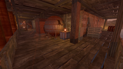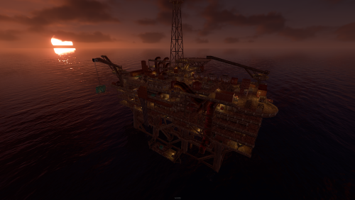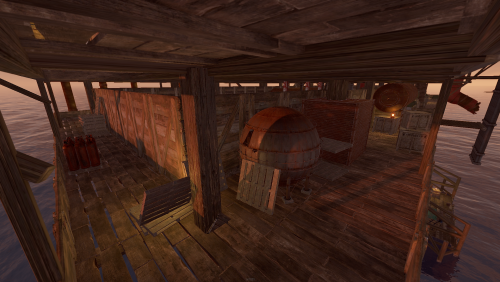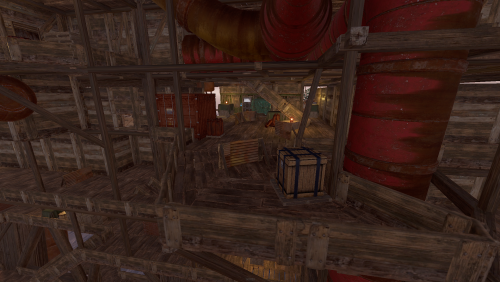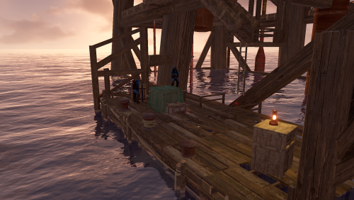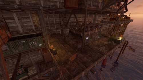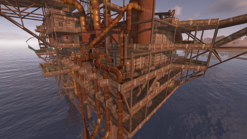 A wooden recreation of Oil Rig including NPCs and loot.