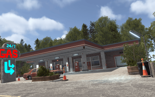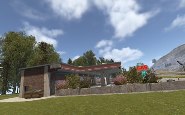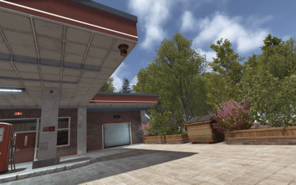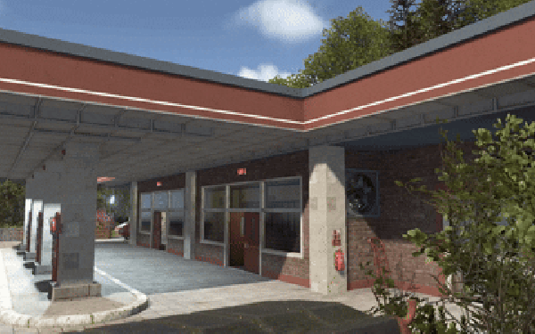 A compact yet welcoming and intricately detailed gas station with an auto repair service, specifically designed for Roleplay servers.