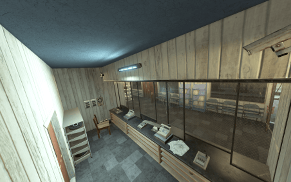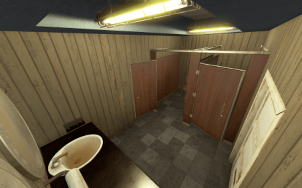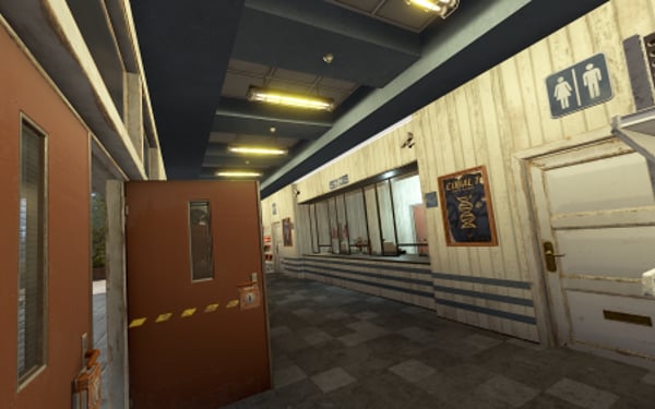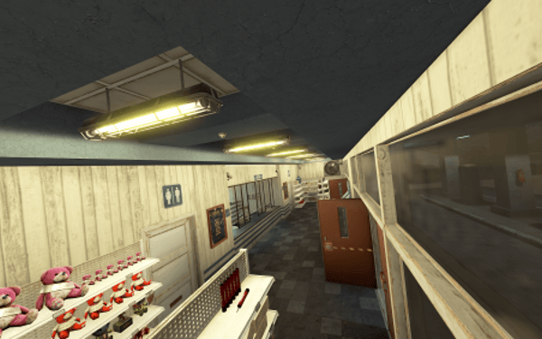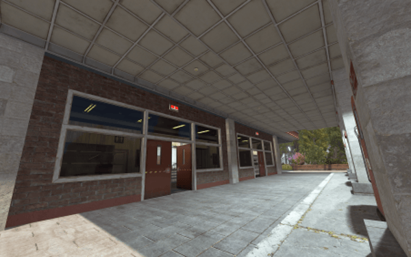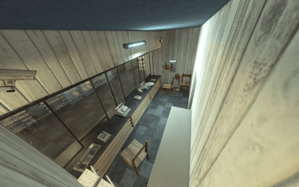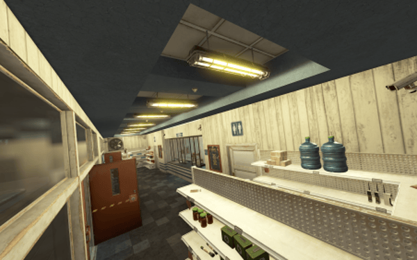 The facility maintains a well-maintained, actively used appearance with no signs of abandonment. All textures are rendered flawlessly without flickering or protruding elements from the walls.