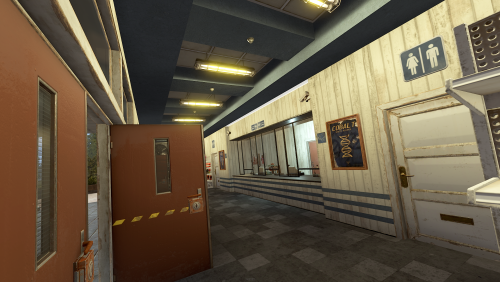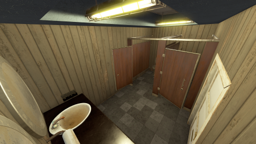 The facility maintains a well-maintained, actively used appearance with no signs of abandonment. All textures are rendered flawlessly without flickering or protruding elements from the walls.