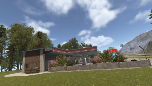 A compact yet welcoming and intricately detailed gas station with an auto repair service, specifically designed for Roleplay servers.