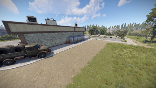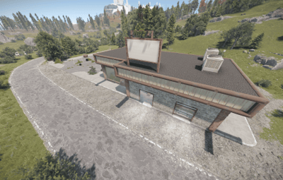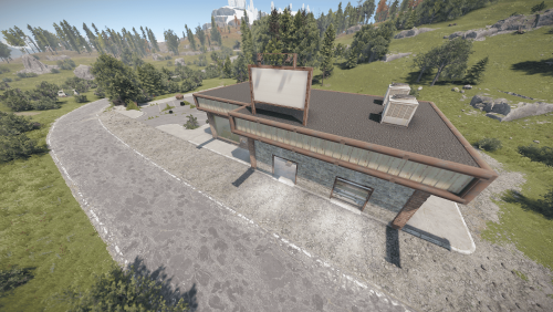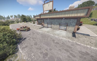 A nice car shop with an integrated car repair shop. The monument features a custom recycler and lots of decorative elements. Best suited for a roleplay server.