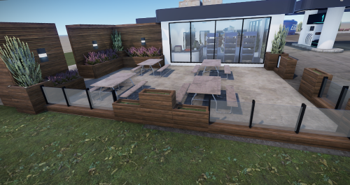 This monument contains pictures frames that can be filled with the desired content with the help of the plugin that you can find here for free : uMod - Sign Artist by Whispers88 and a car workshop and fuel pumps and a confectionery store.