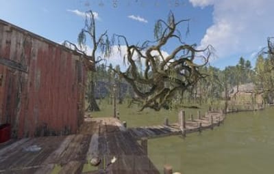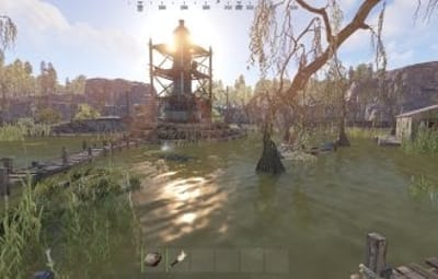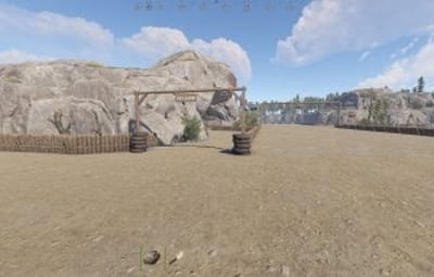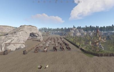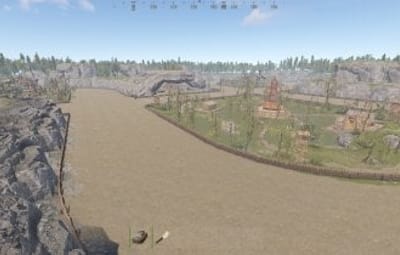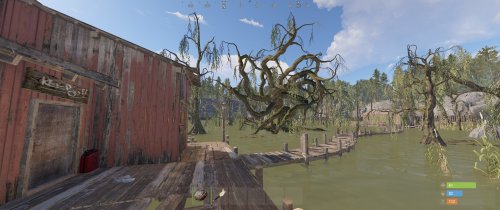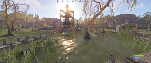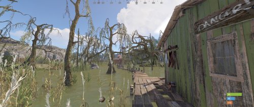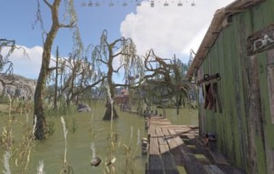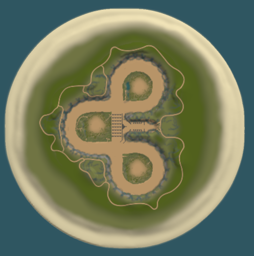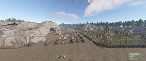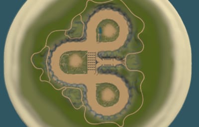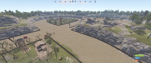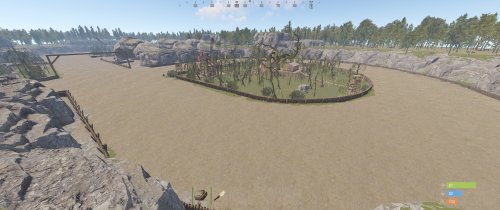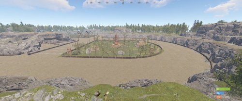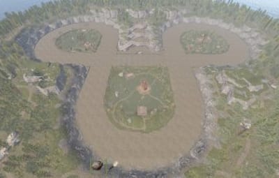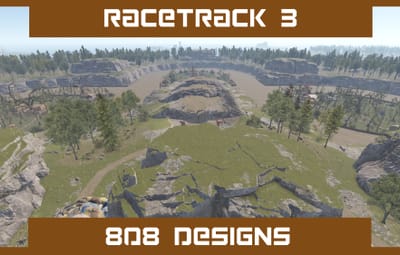 This is my Racetrack 3 monument. It's a large racing monument with a 32 car starting grid. It's built in a Bandit theme so the track is dirt and the surrounding area is cabins and swamp.