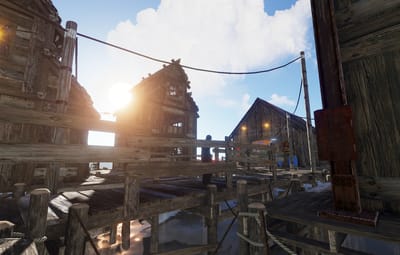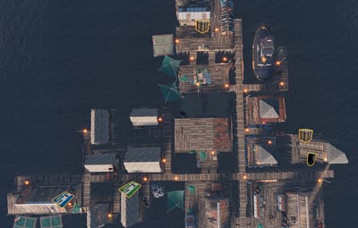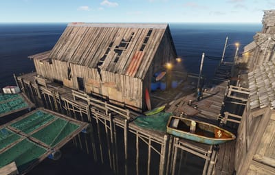 Sailed Away is a custom fishing village with two versions – safe zone and PVP. Safe zone includes multiple vendors, recycler, repair bench, boat shopkeeper and other stuff.