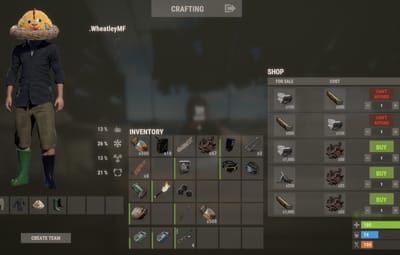 - Weapons vendor: 1 revolver for 200 scrap, 1 double barrel shotgun for 250 scrap, 1 semi-automatic pistol for 300 scrap