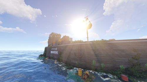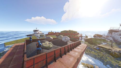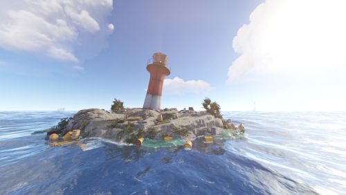 - Floating junkpiles, underwater rock formations with sunken loot