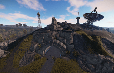 A secret underground base with satellite communications and two entrances. once via an elevator that leads far down and once via a street that makes it possible to drive inside. inside there are many military vehicles in a large vehicle hall. on the side it goes to the accommodations. here via stairs up to the bedrooms. Loot can be found everywhere and a recycler outside in the stelite facility. caution! Radioactive radiation.