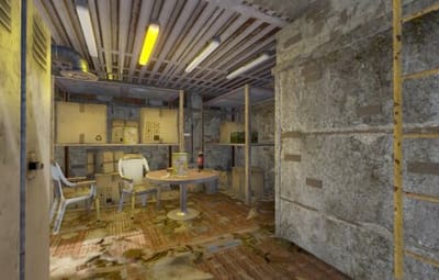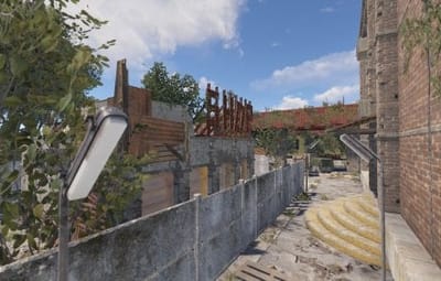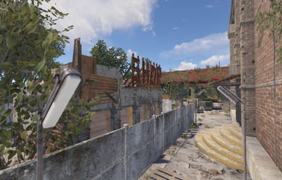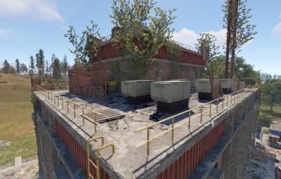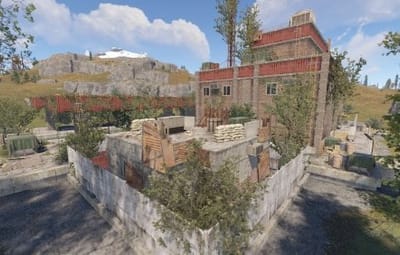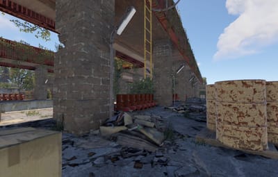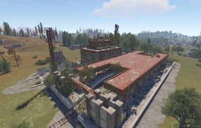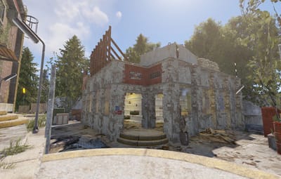 Ground medium-sized monument that needs a red and a blue cards to get the full loot.