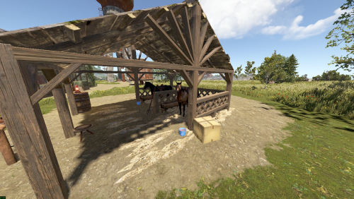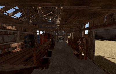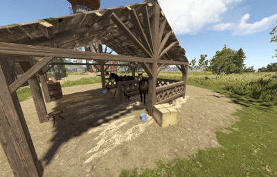 This has a footprint slightly larger than gas station and only 756 prefabs. The stable comes with 2 free rideable horses. There are 2 invisible crates behind the horse spawn that have horse dung in them to loot.