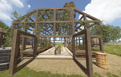 Welcome to Shart's Greenhouse. This is where any player can farm without a base. If using the GrowablesRepsawn plugin one building will constantly restock about every 15 minutes. If you don't use it then it's first come first server until a server wipe. I would recommend placing this in a temperate biome for the plants sake.