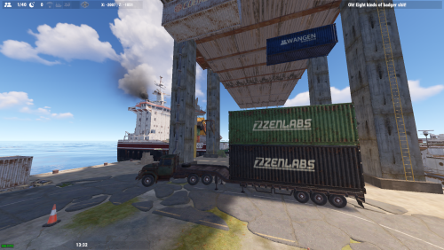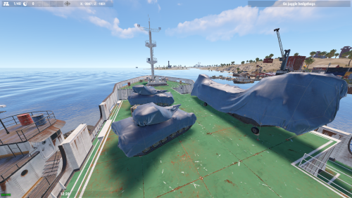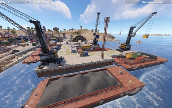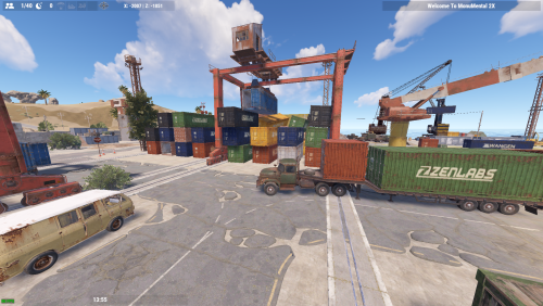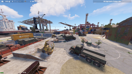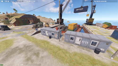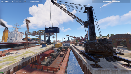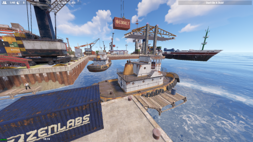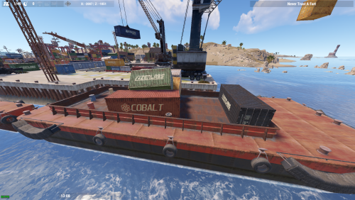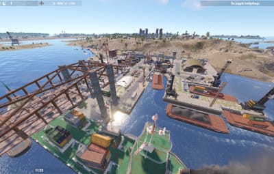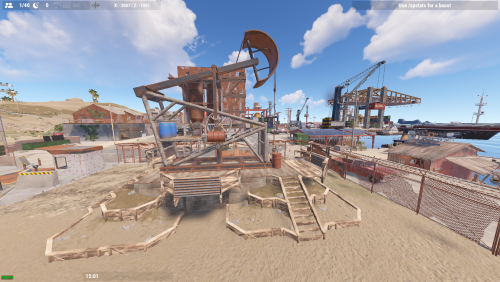 Shipping harbor has 1 oil pump jack with 1 oil refinery, 2 recycle machines, 2 car lifts in the garage, 1 tug boat spawner, both fishing village mission providers.