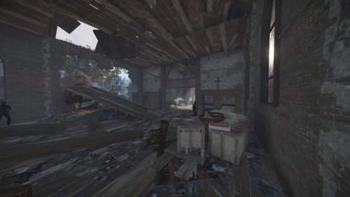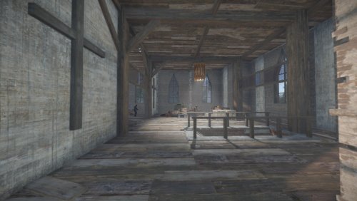A very scary church with a torture cellar and a red card puzzle. In the backyard you can see the old cemetery. The size is similar to Outpost