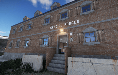 The Special Forces, the best of the best have their training camp here. They have the best vehicles. The Humvee and the Ranger Truck are major components of this operation. Loot can be found inside the facility. if you want, you can install a lot of NPCs in the system. It means fun!
