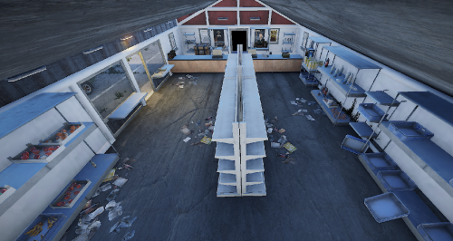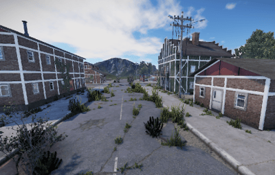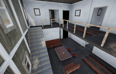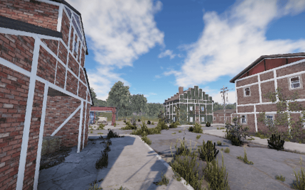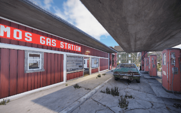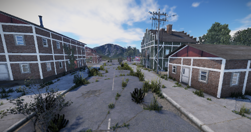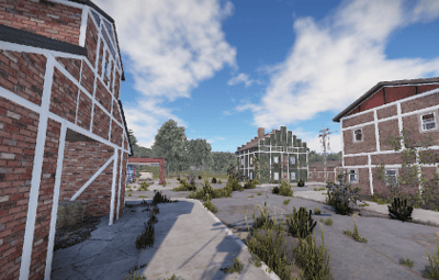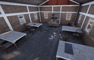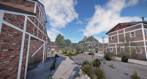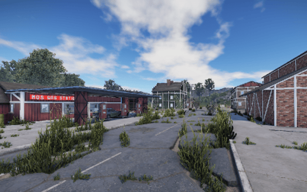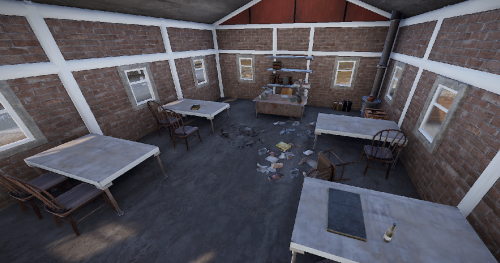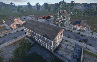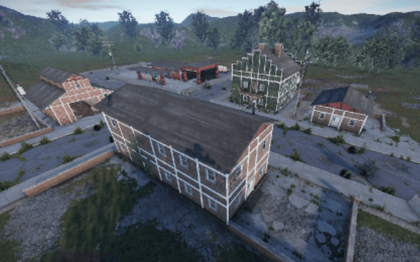 These few buildings stand at a crossroads somewhere in the middle of nowhere. the residents have a gas station where you can find loot, a school, a house with an office and a farmer's barn. another residential building offers space for further loot.