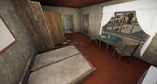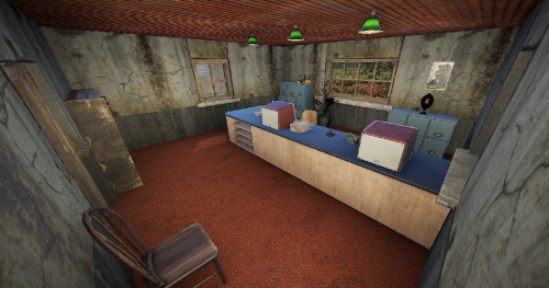 a small hotel with the same furnished rooms. nevertheless, each room is a bit different and different loot. there is an office on the edge of the complex. this prefab is also suitable for placing sleeping players in pve.