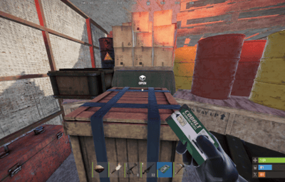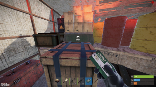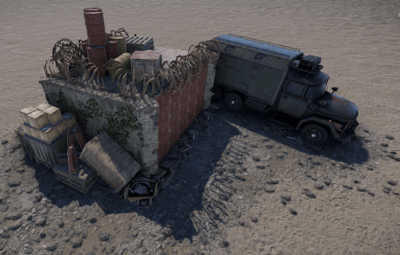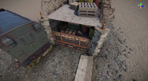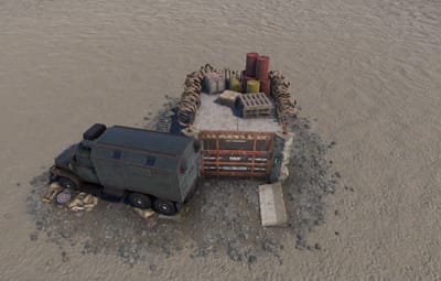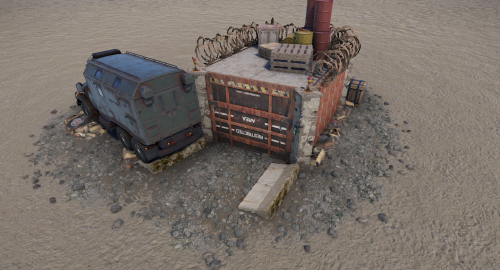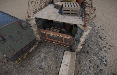 A very small storage bunker with a greencard puzzle leading to a bit of loot and an extremely cool door that slides into the ground.