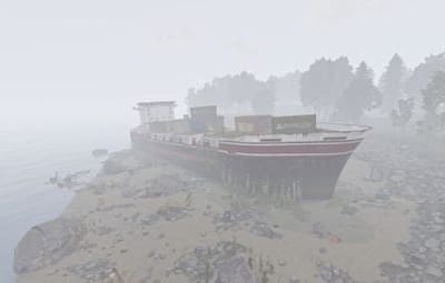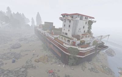 An old, stranded version of the cargoship.