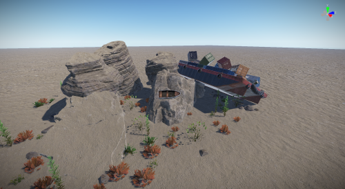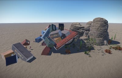 This is a small diving stop containing some barrels, brown crates and 1 or 2 military crates. Loot can be customized for you needs.